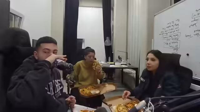 02:04:58Die bestellte Pizza kommt an, jedoch mit einigen Komplikationen, da eine Soße ausgelaufen ist. Es wird über die bestellten Speisen gesprochen, darunter Chicken Wings, Onion Rings und eine Pizza mit verschiedenen Belägen. Es wird sich über die Qualität der Pizza und die verschiedenen Geschmäcker ausgetauscht. Es wird überlegt, ob man die Pizzen tauschen soll, da eine Pizza besser aussieht als die andere. Es wird über den gestressten Lieferanten gesprochen, der am Ende der Straße stand. Die Diskussion dreht sich um die Auswahl der Speisen, die Qualität der Lieferung und die unterschiedlichen Vorlieben beim Essen. Es wird über die verschiedenen Beläge und Geschmacksrichtungen diskutiert und wie diese von den Anwesenden wahrgenommen werden.