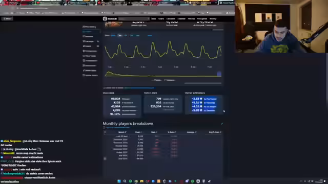 04:40:26Nachdem der Streamer eine Statistik über einen loyalen Zuschauer sieht, der über 1.700 Stunden seines Inhalts verfolgt hat, reflektiert er über seine Fangemeinde und seinen Status als Streamer. Er äußert Bewunderung für die Loyalität seiner Zuschauer, die er als seine 'Gansse' bezeichnet. Gleichzeitig diskutiert er den Wert und die Reichweite seiner Community. Dies mündet in eine allgemeine Diskussion über Lifestyle, Gaming-Kultur und die Phänomene, die im Stream auftreten, wie z.B. der enorme Aufwand, den manche für ihr Gaming-Setup treiben, und der Kontrast dazu, dass manche Spieler mit sehr langsamer Internetverbindung spielen müssen.