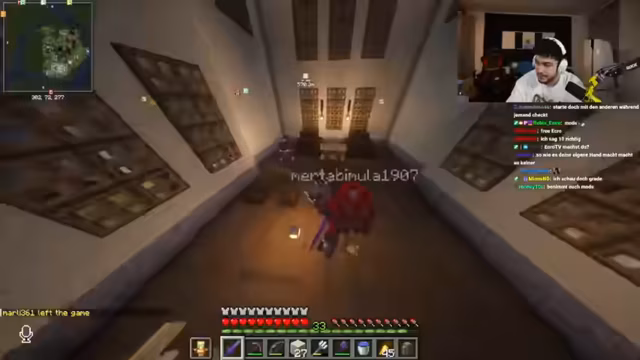 06:16:25Noreax berichtet von zusätzlichen Vorfällen: Ein Spieler namens Kuba hat gestohlene Items (u.a. Netherite-Werkzeuge) und hinterlässt eine negative Rückmeldung im Chat. Gleichzeitig wird ein weiteres Bauwerk (vermutlich ein Stadion) zerstört, was zu erneuten Vorwürfen führt. Die Diskussion dreht sich um die Verluste und die mangelnde Hilfsbereitschaft einiger Spieler. Noreax zeigt sich frustriert über die anhaltenden Angriffe und erwägt, den Server zu verlassen, da er den Wiederaufbau nicht mehr alleine stemmen kann.