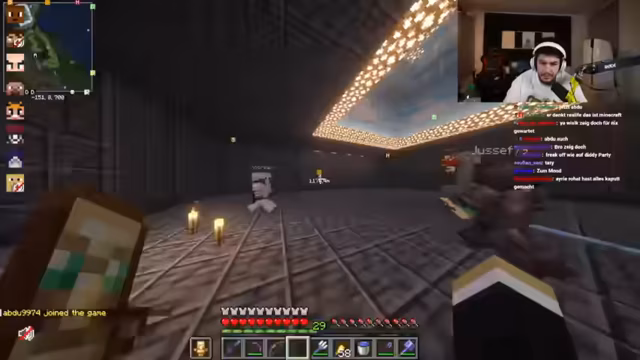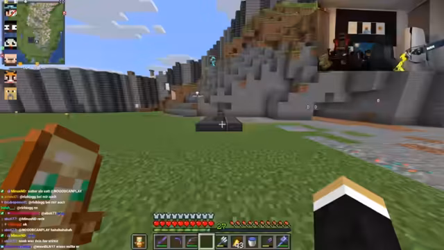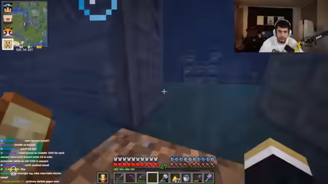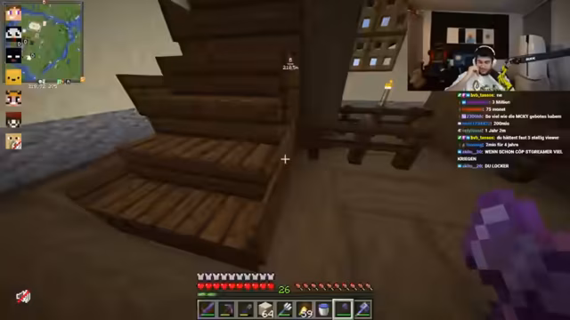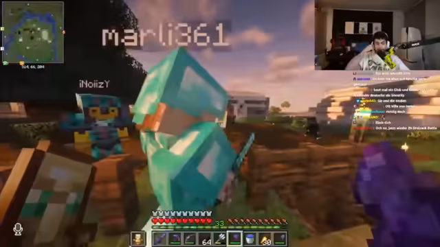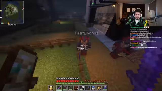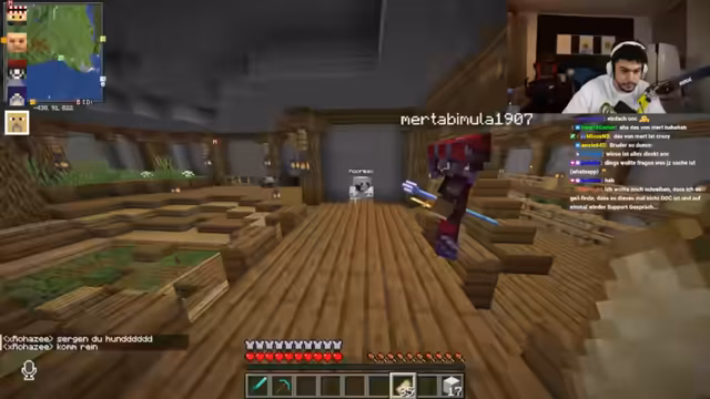 00:16:21Der Streamer betritt den FitnaCraft-Minecraft-Server und wird sofort in Kämpfe verwickelt, insbesondere mit einem Spieler namens Bubi. Es kommt zu einer Auseinandersetzung um ein Schwert, das Bubi abgenommen wurde, worüber verhandelt wird. Der Streamer diskutiert die Rückgabe des Schwerts und bietet finanzielle Kompensation in Form von Spielzeug oder Clash-Royale-Coin an. Parallel dazu plant er, gemeinsam mit anderen Spielern ein UFO zu bauen und Personen wie Yoshi und Karim zu kontaktieren. Die Szene zeigt die typische Dynamik des Servers mit spontanem PvP und Item-Handel.