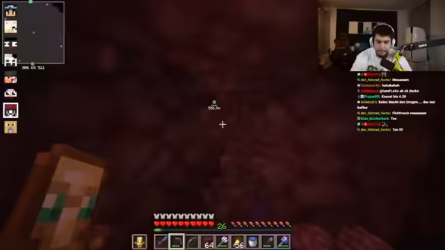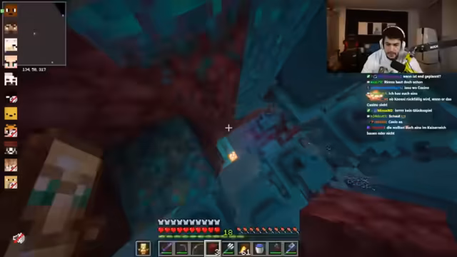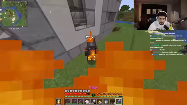11:18:40Im Chat wird intensiv über die Herstellung von Trockenbeton in Minecraft diskutiert. Dabei geht es um die korrekte Verwendung von Wasserquellen, Beton in der Offhand und den kombinierten Einsatz von Spitzhacke mit Rechts- und Linksklick. Der Streamer erklärt den Prozess Schritt für Schritt, inklusive der Besonderheiten beim Platzieren und der Notwendigkeit, Materialien nachzufüllen, wenn die Offhand leer ist. Es folgen praktische Tipps zur Effizienzsteigerung, wie das Halten bestimmter Tastenkombinationen während des Bauprozesses, was von Zuschauern bestätigt wird.