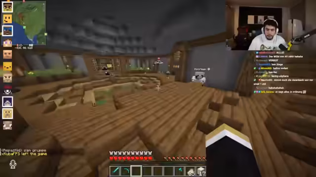 10:15:50Gruppen wie Reapus werden als Feinde identifiziert, und der Streamer plant einen Masken-Raid, um Angriffe zu ermöglichen. Auf einem Schiff sicher kommentiert er, dass Gegner sie nicht angreifen können, und nennt einen Spieler namens Abdo. Es kommt zu Hitze- und Diebstahlszenen, bei denen TNT verteilt und zurückgefordert wird. Ein physikalisches Aufeinandertreffen mit Asis und anderen Spielern führt zu verbalen Konflikten, wobei der Streamer seine Position auf dem Schiff nutzt, um Angriffe zu vermeiden und gleichzeitig eigene Angriffe zu koordinieren.