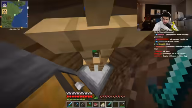 07:04:07Der Fokus verschiebt sich auf das Spiel Minecraft, wo der Streamer seine verlorene Ausrüstung nach einem Angriff repariert. Er diskutiert mit dem Chat über notwendige Verzauberungen wie Effizienz und Unbreaking für Spitzhacken und Schwerter. Dabei wird klar, dass wichtige Gegenstände wie Mending-Bücher oder spezielle Tränke fehlen, die er durch Farms oder Villager-Händler beschaffen muss. Die Reparaturarbeiten werden als mühsam beschrieben, da gesprengte Infrastruktur wie Amböse und Enchanting-Stationen neu aufgebaut werden müssen, um wieder handlungsfähig zu sein.