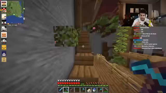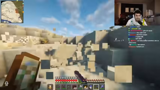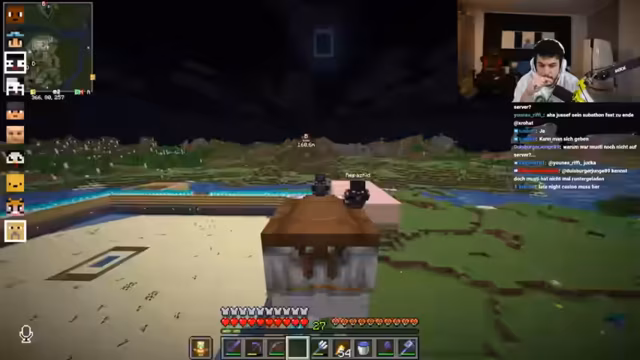 10:04:33Der Streamer kämpft ums Überleben und sucht verzweifelt nach Gas, gibt jedoch nicht auf. Er erwägt, angegriffene Schweine als Nahrungsquelle zu nutzen und überlegt, diese in Wasserquellen zu züchten, was 20 Minuten dauern soll. Während dieser Zeit plant er, Rüstungen und einen pinken Sattel herzustellen und stößt auf Assi mit einer Burg. Es entstehen Diskussionen über Rezepte für Musikboxen und Schallplattenspieler, während Materialien wie Holzplanks und Diamanten beschafft werden müssen. Technische Verwirrung über die Zubereitung von Essen und die korrekten Baupläne für Sattel und Rüstung dominieren den Spielverlauf.