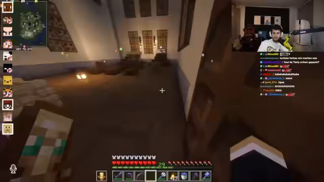 01:18:55Ein Gast namens Kaiser betritt den Stream und bittet um die Nutzung einer XP-Farm. Der Streamer bietet ihm einen Platz an und es kommt zu einer humorvollen Auseinandersetzung, in der er versucht, den Kaiser zu beruhigen und ein Geschenk als Wiedergutmacherung anzubieten. Später plant der Streamer, ein 'Spliff-Feld' anzubauen, und es werden Handelsmöglichkeiten in Minecraft besprochen, wie der Erwerb eines Hammers und der Handel mit anderen Gegenständen.