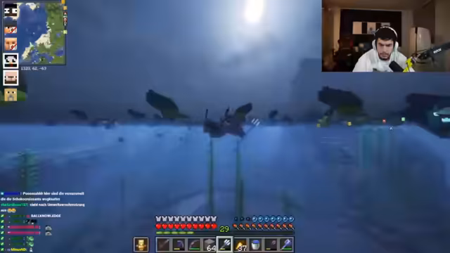 12:29:00Die Teilnehmer tauschen sich über vergangene Erlebnisse aus, darunter ein Erdbeben auf Madeira während eines Calls. Parallel wird der aktuelle Zustand des Servers besprochen: Acht Spieler haben durch einen Vorfall mit Ali Netherite verloren, und die Base wurde trotz Zerstörung wieder aufgebaut. Es folgen Absprachen für einen Besuch bei Gigants Burg, während技术ische Probleme (z.B. Todesfall durch Fallhöhe) humorvoll thematisiert werden.