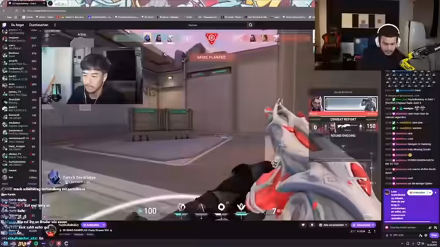07:10:30Nach den organisatorischen Problemen wird das Valorant-Spiel fortgesetzt. Es kommt zu intensiven taktischen Auseinandersetzungen im Spiel, wobei sich die Spieler gegenseitig unterstützen und Anweisungen geben. Der Streamer demonstririert gute Spielweise und erreichte Matches gegen andere Clans.