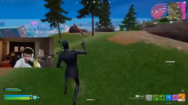 01:45:16Die erste Runde des Turniers beginnt mit der Landungsphase. Das Team des Streamers wählt eine Landestelle in der Nähe einer Stadt, wo sie schnell Loot sammeln können. Sie finden wichtige Ausrüstung wie Pumpguns, Heilungen und Jetpacks. Nach dem Looten bewegen sie sich in die nächste Zone und treffen auf erste Gegner. Es gelingt ihnen, zwei Eliminierungen zu erzielen, aber sie werden später von einem anderen Team attackiert. Das Team versucht, sich mit Bunkern zu verteidigen und die Position zu halten, wird aber schließlich aus dem Spiel eliminiert, ohne Punkte zu erzielen.