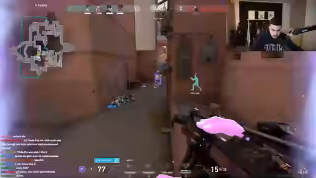 07:23:20Das Team kämpft in einer engen Valorant-Runde gegen einen starken Gegner. Der Streamer agiert sehr emotional und hetzt seine Mitspieler an, um aggressives Spielverhalten zu forcieren. Nach dem knappen Sieg bricht er in Jubel aus und ruft 'Fuck the system!'. Er analysiert den Spielzug und fordert seine Mitspieler auf, härter zuzuschlagen, um die verlorene Runde im nächsten Anlauf zurückzuholen.