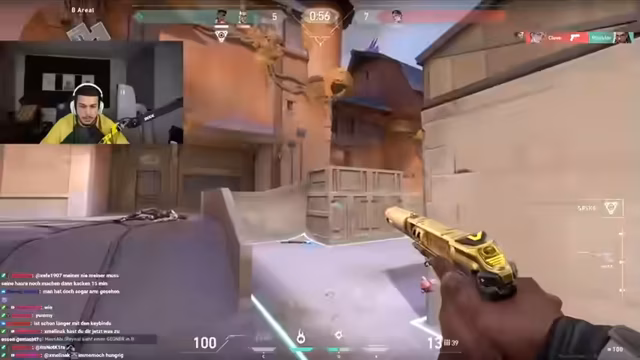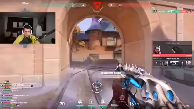 06:33:41Der Streamer ist mitten in einem intensiven Valorant-Spiel und kommuniziert strategisch mit seinem Team. Er gibt taktische Hinweise zu gegnerischen Positionen, wie z.B. einen ISO-Spieler am Spawn, und fordert seine Mitspieler auf, die Waffen aufzuheben. Die Kommunikation ist geprägt von direkten Aufforderungen wie "Nimm die Ob" und "Lass nochmal spielen", wobei der Streamer versucht, das Tempo zu drosseln und die Teamleistung zu koordinieren, um Runden zu gewinnen. Der Fokus liegt auf der Analyse des gegnerischen Spiels und der Anpassung der eigenen Taktik.