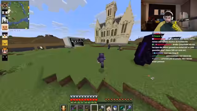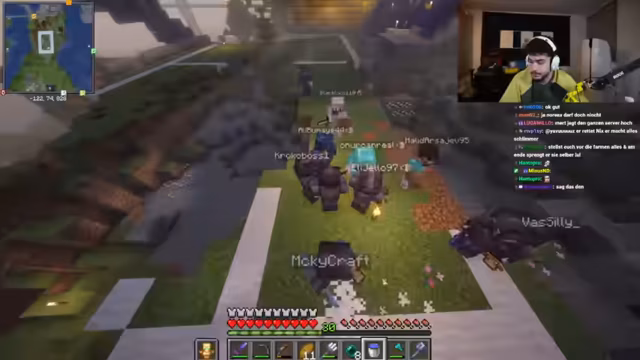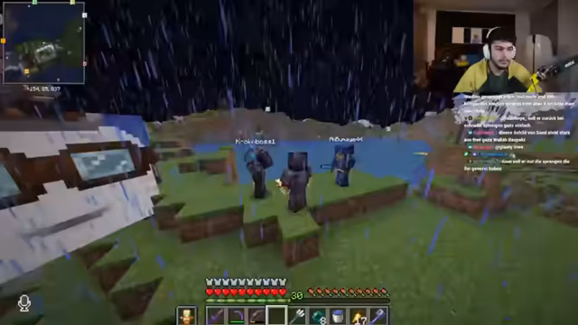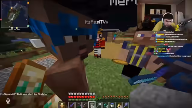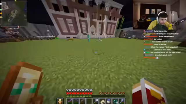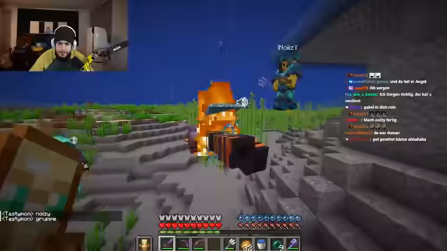 06:17:42Heftige PvP-Kämpfe mit Maces und Bogen dominieren den Stream. Teilnehmer klagen über schnell zerbrechende Rüstungen und mangelnde Vorräte wie Gunpowder. Es kommt zu Beinahe-Todesfällen durch Stürze, und Diskussionen über Taktiken mit Trident und Totems entstehen. Gleichzeitig werden Probleme mit Tierhaltung thematisiert – Ziegen entkommen aus Ställen, weil sie über Zäune springen können. Die Kampfszene wird als chaotisch und ressourcenintensiv beschrieben, mit ständigem Bedarf an Reparaturen und neuen Ausrüstungsgegenständen.
