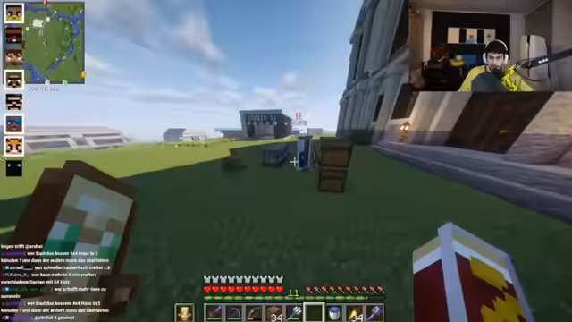 00:01:08xrohat startet den Stream und begrüßt den Chat. Er erwähnt starke Rückenschmerzen, die ihn beeinträchtigen, betont aber, dass der heutige Fokus auf Minecraft liegt. Konkret plant er, das Rathaus fertigzustellen und kündigt ein neues Formatan für den Server an. Dabei geht es um die Idee eines 2-gegen-2-Wettbewerbs mit Minispielen und einer Quizshow, bei der Duos antreten und einen Gewinner ermitteln.