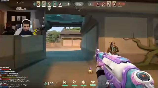 02:53:33Die erste Runde beginnt auf dem Map Lotus. Der Streamer gibt taktische Anweisungen: Rose soll mit Nate C spielen, Breach soll eine Smoke setzen. Ihr Team geht zu A, während Rose auf C positioniert wird. Es kommt zu einem engen Kampf bei A, bei dem das Team zwei Gegner eliminiert und zwei verfehlt. Der Streamer lobt die gute Smokes von Breach und fordert das Team auf, noch zwei Gegner zu eliminieren, bevor sie den Bombenplatz sichern. Es werden weitere Taktiken für die Verteidigung und das Ausspähen des Gegners besprochen.