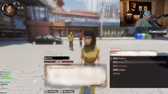 05:02:19Es wird der Obdachlosen-Simulator zusammen mit Youssef und Maus gespielt. Es gab anfängliche Verwirrung, da Maus das Spiel nicht mehr hatte und es erst herunterladen musste. Der Streamer schlüpft in die Rolle eines Obdachlosen und betont den Drogensimulator-Aspekt des Spiels. Es wird humorvoll über das Leben als Obdachloser gesprochen, wobei klargestellt wird, dass es sich um ein Rollenspiel handelt und die Darstellung übertrieben ist. Ein neuer Zuschauer wird begrüßt und es wird auf die Vielschichtigkeit des Streams hingewiesen. Der Streamer äußert sich verstört über die Realitätsnähe des Spiels und es folgt die Charakterauswahl für den Obdachlosen-Simulator. Das Spiel beginnt mit der Aufgabe, herauszufinden, warum der Kopf schmerzt, und der Charakter interagiert mit anderen Charakteren in der Spielwelt, darunter auch zwielichtige Gestalten.