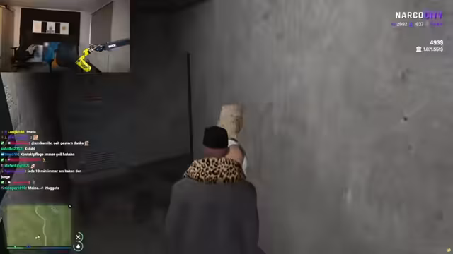 07:06:28Ein zentrales Thema des Streams sind verschwörerische Pläne, die hauptsächlich in der fiktiven Stadt 'Narcos City' spielen. Ein Komploteplant, eine Person namens Big L zu beseitigen und sie dabei mit Schaufeln und anderen Objekten in ihr Gesicht zu schlagen, was euphemistisch als 'reinholen' bezeichnet wird. Ein anderer Teilnehmer bietet an, Schulden in Höhe von drei Millionen zu begleichen, um an der 'Fick-Aktion' teilzunehmen. Der Streamer erkundert verschiedene Elemente dieser Welt, darunter eine 'Box', die alles aufnehmen kann, und ein ganzes 'Mac-Menü', das ebenfalls 'rein' soll.