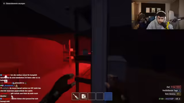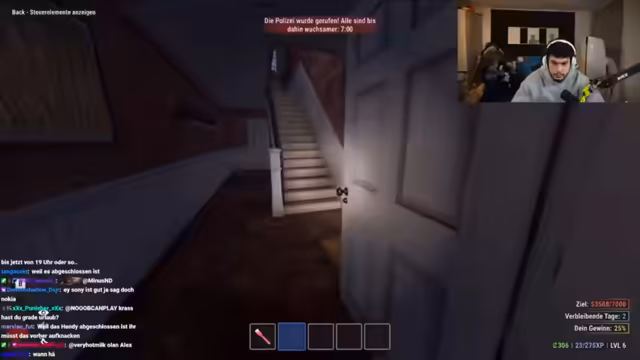 06:44:13Die Spieler standen vor großen Herausforderungen, als sie versuchten, in ein schwer bewachtes Gebäude einzubrechen. Die Alarmanlagen und Wachen machten das Vorgehen schwierig, und es kam zu mehreren Konfrontationen. Während eines besonders kritischen Moments, in dem die Polizei die Spieler verfolgte, erhielt der Stream einen unerwarteten Raid von Knossi, was für zusätzliche Aufregung sorgte. Die Spieler nutzten die Gelegenheit, um Knossi und seinen Zuschauern das Spiel zu erklären, während sie gleichzeitig versuchten, der Verfolgung zu entkommen und gestohlene Gegenstände in Sicherheit zu bringen. Trotz der Schwierigkeiten und des Verlusts einiger Gegenstände gelang es, wertvolle Beute wie einen Gaming-PC und Kaffeemaschinen zu sichern, was die Moral der Gruppe stärkte.