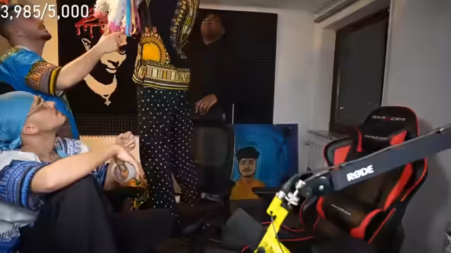 00:06:10Nach mehrfachen Anläufen und technischen Problemen bei der Einrichtung des gemeinsamen Chats schafft es Yusuf endlich, Maus in den Stream zu integrieren. Er erwähne, dass Yusuf nur zwei Matratzen zur Verfügung hat, was zu einer unkomfortablen Schlafsituation führen wird, und erwähne bereits mögliche Challenges und das Thema, derjenige in der Mitte müsse Handschellen tragen. Yusuf beschreibt das geplante Sleepover-Event, bei dem sie die ganze Nacht und sogar für drei Tage im Stream bleiben werden. Er zeigt sich überwältigt von der Vorstellung, einen so langen Stream zu absolvieren, und fürchtet, einen Burnout zu erleiden. Yusuf äußert sich auch frustriert über die Technik, die in seinem Zimmer vorhanden ist, wie z.B. Gerüche und ein verdächtiger Stuhl, den Maus besitzt.