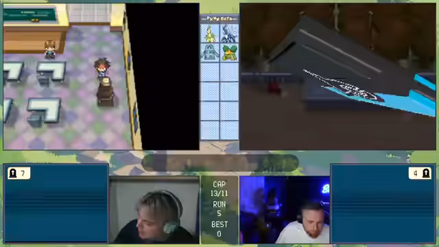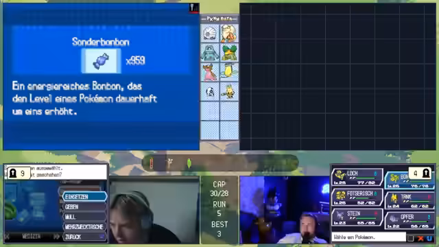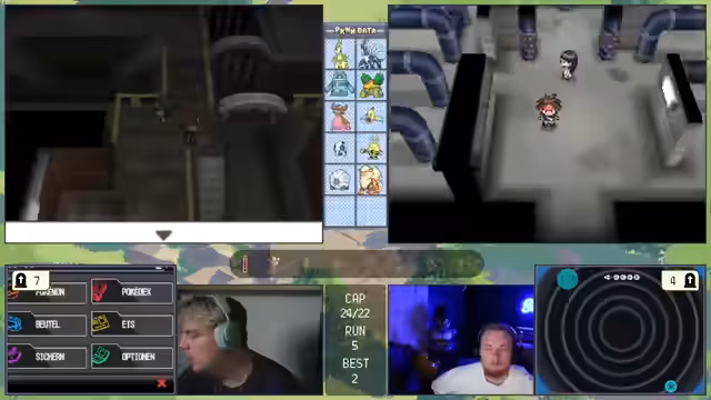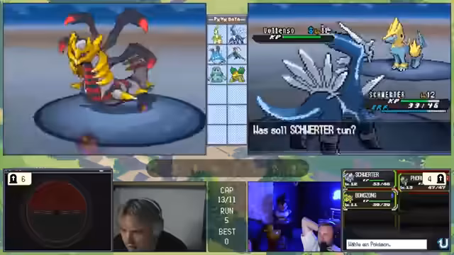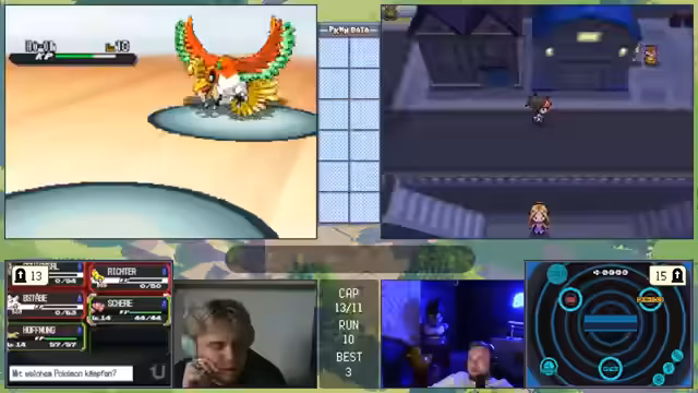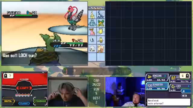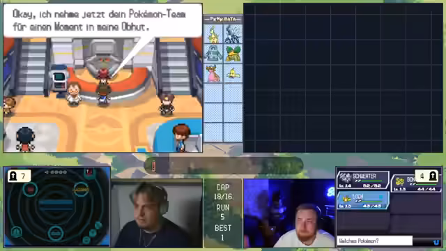 06:27:22Ein technisches Problem tritt auf, als eine Taste im Controller hängen bleibt, was den Streamer daran hindert, Pokémon zu fangen. Überlegt wird, das Spiel mit PK-Hacks zu manipulieren, um den Stand zu retten. Nachdem das Problem gelöst ist, wird das Team für den nächsten Kampf überarbeitet. Es werden mehrere Pokémon wie 'Loch', 'Opfer' und 'Melotik' zur Debatte gestellt, aber letztlich werden 'Bronzong', 'Loch' und 'Bongzang' als die stärksten und wichtigsten Links für den bevorstehenden Kampf gegen einen starken Endgegner ausgewählt, da sie einen guten Mix aus Tank und Schaden bieten.