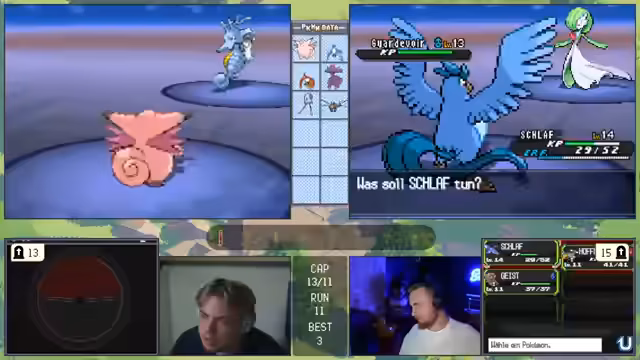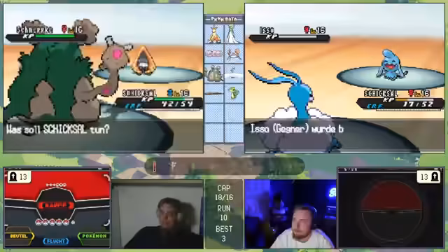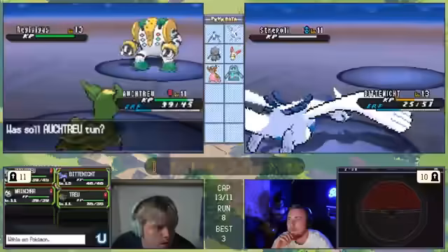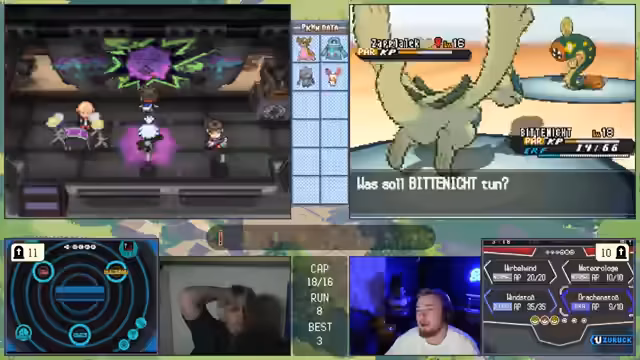 08:43:19Im zehnten Run trifft der Streamer auf Deoxys. Obwohl er die Werte des legendären Pokémon als "schlechteste Fähigkeit possible" kritisiert, ergreift er die Gelegenheit und fängt es. Er beschreibt diesen Run im Nachhinein als den "besten Run bis jetzt", da sie zwei "Legi-Links" (Arctos und Lugia) sowie andere gute Verbindungen erzielten, was die Basis für zukünftige Erfolge darstellt.