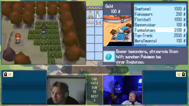 05:14:57Nach einer ereignisreichen Passage durch die Wüste erreichen die Streamer eine neue Stadt. Sie nutzen die Gelegenheit, ihre Pokémon im Pokémon-Center zu heilen, den Rest des Inventars aufzuräumen und wichtige Items wie Leuchtsteine zu erwerben. Die Stimmung ist optimistisch, da sie einen schwierigen Abschnitt gemeistert haben und nun neue Möglichkeiten und Encounters in einer frischen Umgebung erwarten.