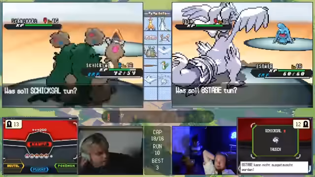 02:11:56Ein besonders unglücklicher Kampf gegen ein Eis-Pokémon führt zum Totalverlust zweier Teammitglieder, was als "Fünfter Ron" und "herber Rückschlag" beschrieben wird. Trotz des Rückschlags bleibt die Stimmung im Stream humorvoll und selbstironisch. Die Reaktionen des Chats sind ein integraler Bestandteil des Streams, und der Streamer interagiert häufig mit den Zuschauern, die als "Treuenstücke" bezeichnet werden. Trotz des Verlusts bleibt der Fokus darauf, den Run fortzusetzen und weiterzukämpfen.