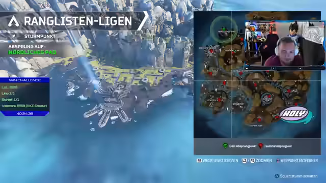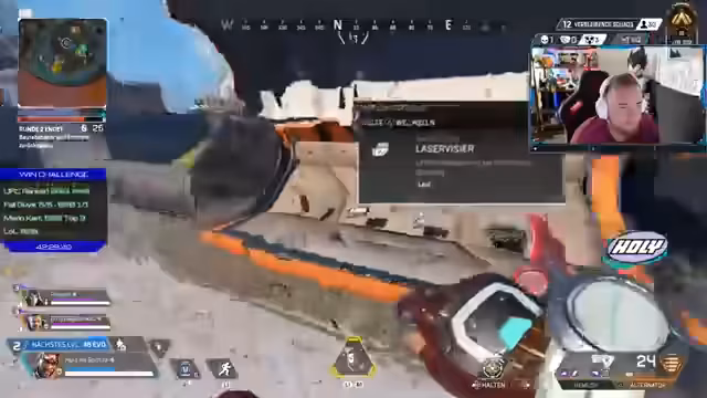 14:52:27Der Stream beginnt mit schnellen Kämpfen und taktischen Entscheidungen. Es werden mehrere Gegner eliminiert und die Map wird mit aktivem Scannen überwacht. Ein Silber-Account wird erwähnt, um schwierige Lobbys zu umgehen, und der Streamer betont, dass Apex-Kinder verarschen soll, was den humorvollen und herausfordernden Charakter der Challenge unterstreicht. Das Gameplay ist geprägt von schnellem Action und der Jagd nach Siegen.
