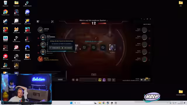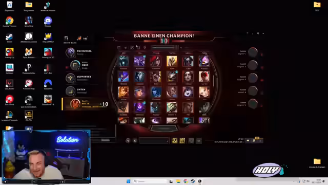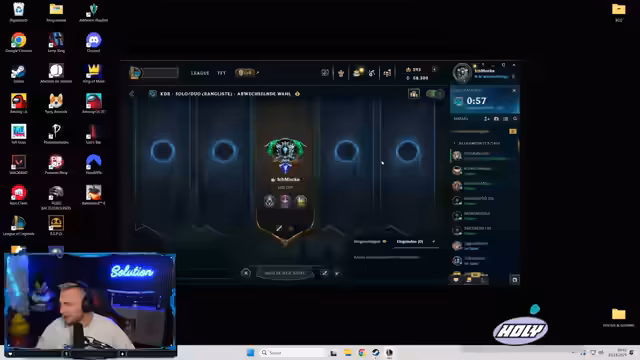 00:51:34Der Streamer spielt mehrere Runden League of Legends und kommentiert sein Gameplay. Er ärgert sich über einige Spielsituationen und die Leistung seines Teams, bleibt aber motiviert. Er experimentiert mit verschiedenen Champions und Runes und versucht, seine Strategien für anstehende Turniere zu optimieren.