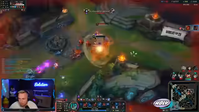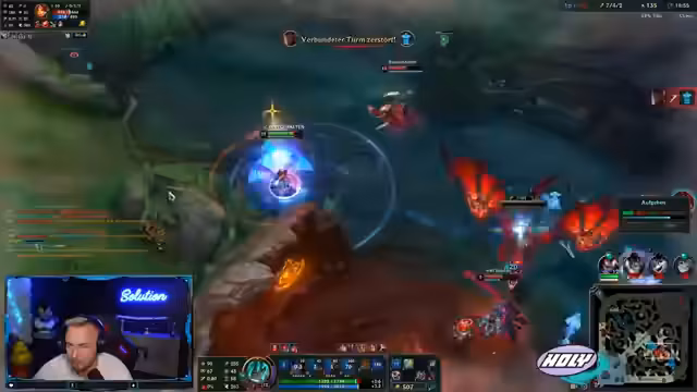 01:43:32Der Streamer zeigt starke emotionale Reaktionen während des Spiels, von Frustration über verpasste Chancen bis zu überwältigter Freude bei erfolgreigen Manövern. Seine Kommentare sind geprägt von intensiven Ausdrücken wie 'Geisteskrank', 'Holy shit' und 'Gänsehaut', während er gleichzeitig seine eigenen Fehler anerkennt und analysiert. Er reflektiert über schwierige Spielzüge wie Fehlpositionierungen oder nicht optimale Item-Builds.