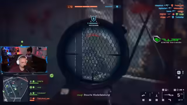 05:03:12Der Streamer kritisiert den Spielstil des Partners Monte, der Gesellschaftsspiele vermeidet und beim Sniper-Rollen versagt. Die aktuelle Map wird als anstrengend und schwierig beschrieben. Es werden Spielmechaniken wie das Snipen und die Anfälligkeit von Waffen für One-Hit-Kills im Kopf- oder Halsbereich erörtert. Trotz teilweise guter Leistungen, wie einem Headshot, fühlt sich der Streamer im Spiel unkonstant und von Glück abhängig.