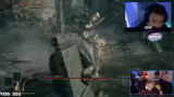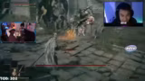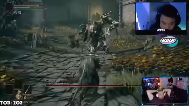 10:00:59Während des Kampfes gegen Godric kommt es zu technischen Problemen, der Streamer macht den Controller für seine ungenaue Steuerung verantwortlich. Er kritisiert die Ausweich-Mechanik des Spiels als unfair und unintuitiv, da er selbst bei erfolgreichem Ausweichen oft getroffen wird. Zudem wird der Gegner als 'Spammer' bezeichnet, der ohne erkennbares Muster angreift.