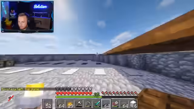 12:30:48Der Stream wechsel abrupt von Arc Raiders zu Minecraft. Die Aktionen konzentrieren sich auf den Bau einer Schwarzpulver-Farm. Server-interne Probleme stehen im Fokus, darunter der Verlust von Diamanten durch einen TNT-Angriff auf die Basis eines Mitspielers und die daraus resultierenden Schulden. Kooperative Pläne mit anderen Spielern für den nächsten Tag werden besprochen, um Materialien einzusammeln und die Farm zu optimieren.