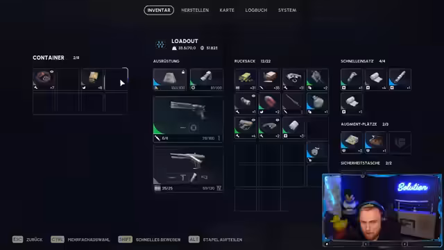 08:11:25Nach mehreren gescheiterten Runden ohne nennenswerten Loot entscheidet sich der Streamer für riskantere Strategien wie Extract Campen, um schneller an Geld und seltene Baupläne zu gelangen. Die Runden sind von Frustration geprägt, da Gegner besser ausgerüstet erscheinen und der Streamer mehrmals in schnelle, unfaire Kämpfe verwickelt wird. Er diskutiert die Vor- und Nachteile von Solo- versus Team-Spielen und stellt fest, dass allein Spielen die Kontrolle über den Loot gibt, aber auch gefährlicher ist. Die Streams sind voller Adrenalin, aber der finanzielle Erfolg bleibt aus.