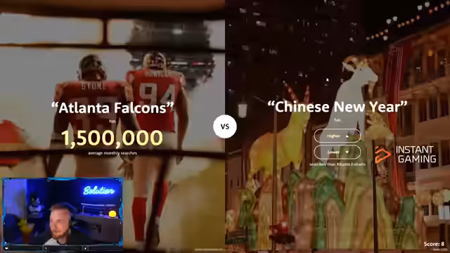 06:34:08Nach der Geo-Jagd wechselt der Streamer zu einem Higher-Lower-Spiel, bei dem er gegen den Chat antritt. Das Ziel ist es, zu erraten, ob ein bestimmter Wert höher oder niedriger ist als der vorherige. Die Themen reichen von Google-Suchvolumen für Prominente wie David Bowie und Donald Trump bis hin zu Filmen wie Jurassic Park und Serien wie Brochurch. Der Streamer diskutiert intensiv über die Popularität der Begriffe und versucht, basierend auf seiner Intuition und Wissen, korrekte Entscheidungen zu treffen, während der Chat aktiv an den Runden teilnimmt.