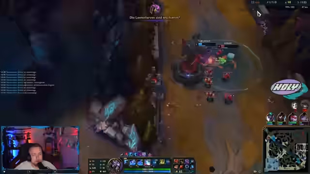 08:29:47Der Streamer kommentiert ironisch sein eigenes Spiel und lobt gleichzeitig die Leistung des Jarvan. Er hadert mit seiner Item-Auswahl und überlegt, was er verkaufen soll. Es wird die Bedeutung des bevorstehenden Teamfights betont, und der Streamer äußert seine Frustration über die lange Respawn-Zeit der Gegner. Er reflektiert über seine Entscheidung, den Baron Recall zu riskieren und die daraus resultierenden Konsequenzen. Der Streamer analysiert die Spielsituation und erkennt, dass das Spiel sehr anstrengend ist und die Niederlage schmerzhaft wäre. Er erklärt, dass die Gegner keinen Teleport haben und sein Team die Basis verteidigen muss. Der Streamer äußert seine Erleichterung über den Sieg und bezeichnet das Spiel als Gold-Krimi. Er lobt seine eigene Leistung und betont, dass Ori ein entscheidender Pick war.