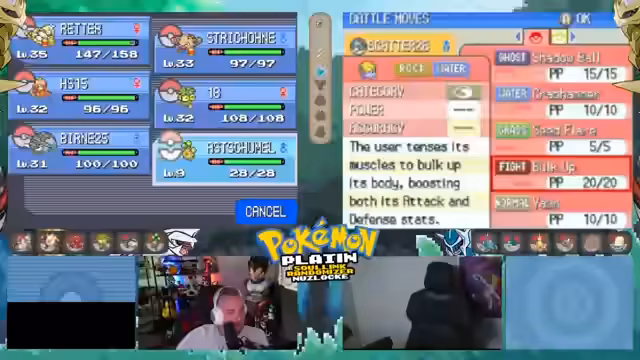 01:34:30Der Stream konzentriert sich auf den Kampf gegen verschiedene Pokemon mit Fokus auf deren Movesets und Stärken. So wird Blaze Kick als starke Attacke für Rassus erwähnt und der Versuch unternommen, ein Pflanzenpokemon mit Boomerang zu schwächen. Es werden verschiedene Gegenstrategie diskutiert, wie der Einsatz von Turbots als Counter und die Analyse von Attacken wie Icy Wind oder Horn-Attacke, um die Schwächen der Gegner zu identifizieren und eine effektive Taktik zu entwickeln.
