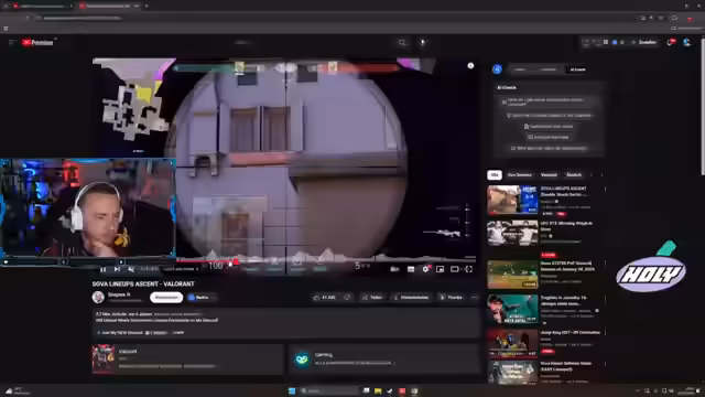 00:25:32Der Streamer widmet sich intensiv dem Erlernen von Valorant-Lineups, speziell auf der Karte Ascent. Er testet verschiedene Arrow-Positionen, wie den Arrow auf B oder eine Charge-Linie. Dabei diskutiert er strategische Optionen, z.B. den Einsatz von Double Shock Darts, und probiert alternative Winkel, um optimal vorbereitet zu sein. Es ist ein Geplänkel, um alle wichtigen Setups zu verinnerlichen und zu perfektionieren.