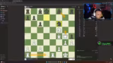 04:21:57Nach den Mario Kart-Runden wechselt der Streamer das Thema und startet ein Schachspiel. Er ist im Streamen von Schach unerfahren und sucht nach Unterstützung im Chat. Er kommentiert seine Züge laut mit und überlegt offen über seine taktischen Optionen. Das Spiel verläuft für ihn zunächst schwierig, und er gerät unter Zeitdruck. Er fühlt sich unsicher und macht sich Sorgen, das Spiel zu verlieren, was zu Frustration führt.