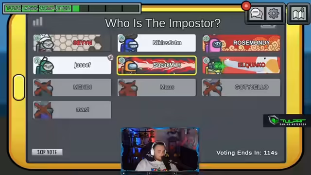 02:33:26Es herrscht große Verwirrung über die Identität eines Spielers namens Danny. Zuerst wird berichtet, dass Danny bei Admin gesehen wurde, kurz darauf bei Security und auch, dass er einen Mitspieler namens Mert getötet hat. Dies führt zu intensiven Diskussionen und Vorwürfen im Chat, da sich die Aussagen widersprechen. Die Spieler bemühen sich, durch Abstimmungen und Einlassungen die Situation zu klären, wobei Mert und Medi als mögliche Imposter ins Visier genommen werden. Das gesamte Team ist verunsichert und es kommt zu gegenseitigen Beschuldigungen, wer das Votum manipuliert hat.
