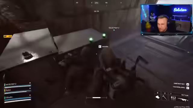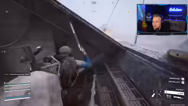07:16:06Nach dem Eindringen in das Ernter-Zentrum ist das Team plötzlich von einem anderen Gegnerteam umzingelt. Der Ausweg wird versperrt und eine riskante Flucht wird in Erwägung gezogen. Der Streamer wirft eine Rauchgranate, um Deckung zu schaffen, während die Teamkameraden versuchen, Gegner auszuschalten. Die Situation eskaliert zu einem heissen Kampf, bei dem das Team stark unter Druck gerät und um sein Überleben kämpft.