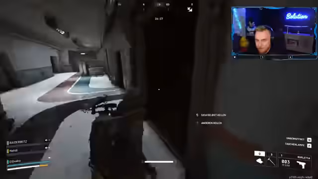 06:15:29Während eines gemeinsamen Raids mit 'Panne' und anderen Spielern geht es um taktische Vorgehensweisen. Der Streamer kritisiert sein eigenes Verhalten, indem er承认, dass er den Kampf in einer schwierigen Position fortsetzte, was zum Tod führte. Er reflektiert über seine Entscheidung, nicht sofort zu heilen, was einen Fehler darstellte, und das Team muss nun mit einer riskanten Situation umgehen, während sie auf Extraktion warten.