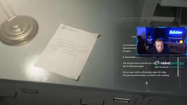 02:33:31Das Stream-Start-Segment zeigt den Eintritt in das Spiel, bei dem der Spieler anfänglich verwirrt über seine Identität und Rolle ist. Zuerst identifiziert er sich als 'Leon-Shit', bevor er realisiert, dass er die Figur Grace spielt. Sein initialer Fokus liegt auf der Erkundung der Umgebung und dem Sammeln von Gegenständen wie einem Schraubenzieher, wobei er mehrfach vom Zurückhalten durch eine unsichtbare Kraft berichtet. Die Atmosphäre ist von Anspannung und einem wachsenden Gefühl des Grusels geprägt, als er über die beengten Räume spricht und die ständige Präsenz einer unbestimmten Bedrohung spürt.