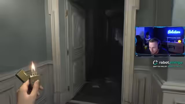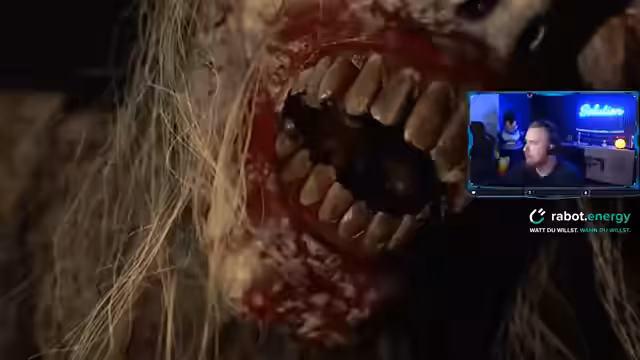 02:18:23Leon und Grace müssen sich durch einen dunklen Raum kämpfen, in dem eine Kreatur namens Smiler lauert. Leon hat nur ein kleines Feuerzeug als Lichtquelle, was die Situation extrem angespannt macht. Die Notwendigkeit, Werkzeug wie einen Schraubenzieher zu finden, wird zur Priorität, der sie aber nur schwer nachgehen können. Grace wird Opfer eines Jumpscars und gerät in Panik, während der Streamer seine eigene Angst vor dem Horror-Spiel offenbart und über den ungewohnten, fordernden Charakter des Spiels im Vergleich zu früheren Resident Evil-Teilen spricht.