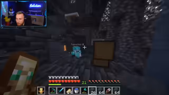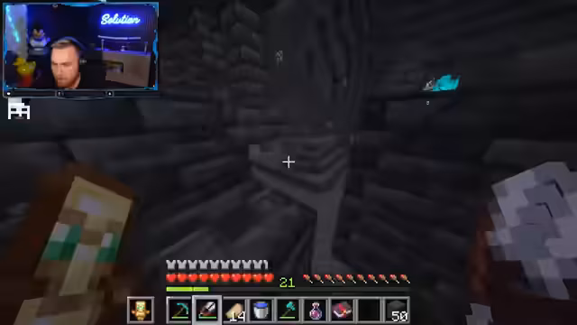 02:18:36Der Streamer konzentriert sich anfangs auf das Überleben in der Trail Chamber. Er erkundet den Raum, stellt fest, dass er im ersten Raum gefangen ist und sammelt Ressourcen wie Wolle für ein Bett und Eisen für eine Axt. Er plant, ein Basislager zu errichten und überlegt, ob er einen Sield craften soll, um sich besser gegen die anstehenden Monster zu schützen. Er sucht nach einem Spawner und stellt fest, dass er noch nicht alle Kisten untersucht hat, was ihm Stress bereitet.
