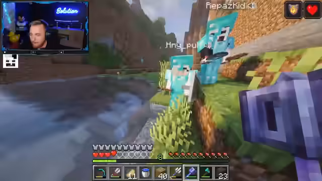 01:08:56Nachdem die Diskussion beigelegt wurde, bietet einer der beteiligten Streamer, Abo, an, denjenigen, dessen Farm zerstört wurde, mit Materialien zu versorgen. Der Verlierer der Farm akzeptiert das Angebot und bittet um Obsidian. Kurz darauf geschieht ein Vorfall, bei dem ein Creeper eine verzauberte Diamantrüstung zerstört, was zu einem erneuten Wutausbruch führt. Daraufhin überreicht Abo dem Verlierer eine weitere Diamantrüstung als Entschädigung, was eine umgangssprachliche, aber klare Entschuldigung darstellt.