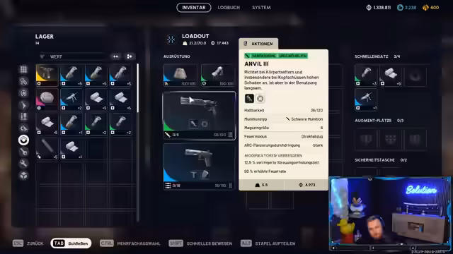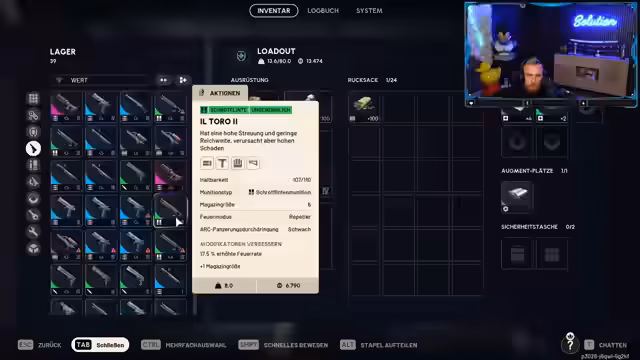 11:12:51Nach einem Rückschlag werden die eigenen Spielzüge analysiert und es wird über die Rolle des Controllers gesprochen, was auf eine Selbstreflexion der spielerischen Leistung hindeutet. Großes Augenmerk wird auf das bevorstehende Prestige-System gerichtet. Der Streamer ist begeistert von den angekündigten Features, insbesondere dem goldenen Rucksack mit 25 Slots, 3 Sicherheitsfächern und der Fähigkeit, sich einmal pro Runde selbst zu heilen. Dieses neue Item wird als "krass" und "gamechangend" bewertet. Der Streamer plant, seine Spielstrategie auf die Nutzung dieses Rucksacks umzustellen.