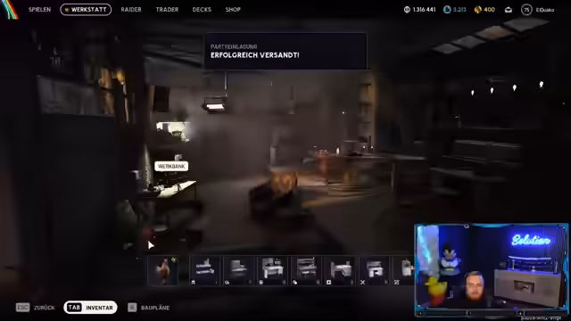 08:47:38Nach dem Ende einer Runde beschäftigt sich der Streamer mit dem Verwalten seines Inventars und dem Verkauf von Gegenständen. Er hat das Ziel, sein Guthaben von 1,3 Millionen auf 5 Millionen zu steigern, um im Prestige-Modus weiterzukommen. Er plant, einen Teil seines Inventars zu verkaufen und mit dem restlichen Geld neue Waffen zu kaufen, um bei einem bevorstehenden Event mit Queen und anderen Spielern erfolgreich zu sein.