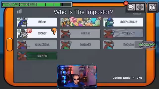 04:22:47Während des Spiels arbeitet der Streamer als 'Crewmate' daran, den Impostor zu finden. Er nutzt seine Tracker-Funktion, um die Bewegungen von 'Eldos' zu überwachen, und verdächtigt 'Mert' aufgrund seines 'komischen' Verhaltens. Durch den Fund einer Leiche in 'Navigation' kommt es zu einer Konfrontation mit 'Josef'. Der Streamer nutzt sein Mikrofon, um die Chat-Aktivitäten zu unterbinden und sich auf die Voten zu konzentrieren.