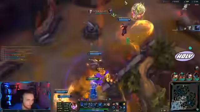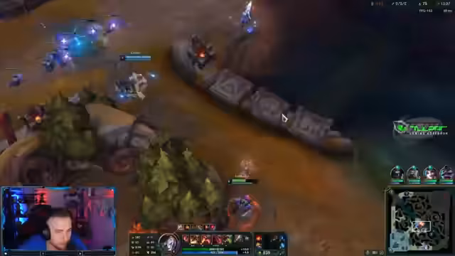 08:19:15Nach dem Ende des Pummel-Party-Spiels wechselt der Stream zu einem League-of-Legends-Gameplay. Die Anfangsphasen des Spiels werden analysiert, inklusive der Champion-Auswahl und der Frühphase. Der Streamer kommentiert das Spielgeschehen live, beschreibt die Taktiken des Gegners und kritisiert Entscheidungen im eigenen Team. Es werden Mechaniken wie der Transporter (TP) und das Nebeneinanderlaufen von Spielern (Farming) angesprochen, um die strategische Lage zu verdeutlichen.