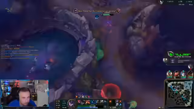 08:45:08Das League-of-Legends-Spiel schreitet ins Mittelspiel fort. Der Fokus liegt auf dem Kampf um objektive Ziele wie den Ersten Drachen und der Analyse von Teamkämpfen. Der Streamer zeigt sich frustriert über taktische Mängel im eigenen Team, insbesondere das Fehlen eines Tanks und ineffektives Objektiv-Pushing. Es kommt zu kritischen Momenten, in denen Positionierungsfehler und fehlende Koordination zum Nachteil des eigenen Teams führen. Der Streamer kommentiert die Spielsituation emotional und benennt die Gründe für den Rückstand.