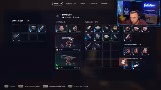 08:59:37Neben ständigen technischen Schwierigkeiten mit der Kamera und der Tastatur beschäftigt sich der Streamer intensiv mit dem Gameplay. Er reflektiert über die Schwierigkeiten, im Spiel überleben zu müssen, und stellt die Taktiken von Gegnern in Frage. Gleichzeitig gibt er Einblicke in seine Loot-Erfolge, wie die Beschaffung von Waffen wie der Renato 4 und der Eltoro 4. Die Stimmung wechselt zwischen Frust über technische Defekte und der Freude über wertvolle Beute.